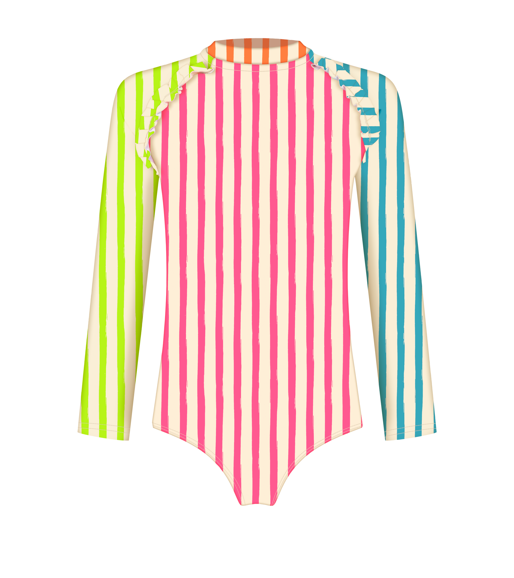 Lagoon Stripes Zip-Back Long Sleeve Swimsuit